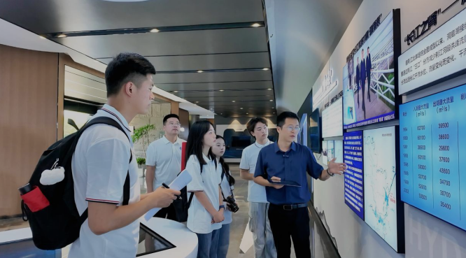 科技护江的生动实践同样令学子们深受触动。在鄱阳湖南矶湿地,“天—地—空”立体防护体系与“点鸟奖湖”创新机制共同守护着两百余种候鸟的繁衍生息;在南京水利科学研究院,精密的水工模型展现科技力量;在江都水利枢纽,“智慧调度”系统与鱼类洄游通道的建设,让“不搞大开发、共抓大保护”从理念走向现实。一路行走,同学们与护林员、科研人员、环保志愿者深入交流,沉浸式体悟“绿水青山就是金山银山”的深刻内涵。