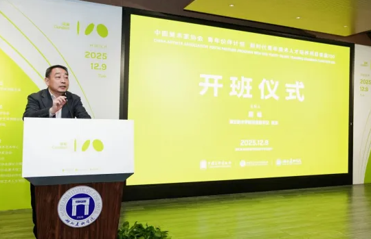 12月9日上午11:30,由中国美术家协会、湖北省文学艺术界联合会、湖北美术学院主办的“中国美术家协会‘青年伙伴计划’‘新时代青年美术人才培养项目——策展100’”在湖北美术学院开班。开班仪式由湖北美术学院党委副书记、院长周峰主持。