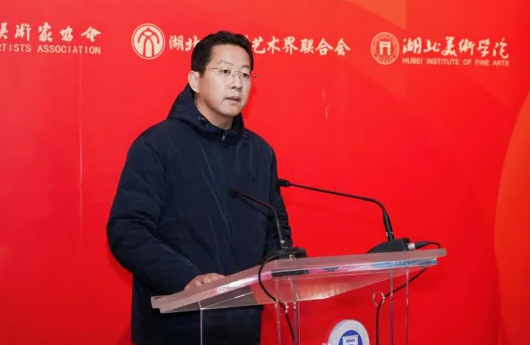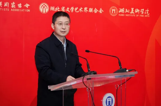 中国美术家协会分党组书记、驻会副主席屈健在致辞中表示,在纪念中国人民抗日战争暨世界反法西斯战争胜利80周年的重要历史节点,此次主题海报设计展以艺术的方式铭记历史、烛照未来。中国美协与各主办方携手办展,既是对武昌艺专“艺术救亡”初心的深切共鸣,也是对“与时代同行、为民族立言”精神品格的传承发扬。他勉励广大艺术工作者,尤其是青年一代,自觉将艺术理想融入民族复兴征程,用创新的视觉语言传承红色基因、弘扬抗战精神,为繁荣发展社会主义文艺、建设中华民族现代文明贡献艺术力量。