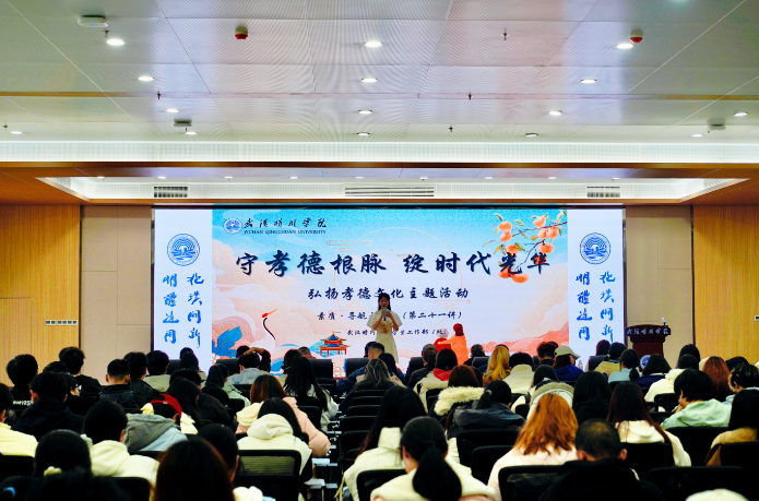 从《诗经》中的孝思到《左传》“掘地见母”的典故,从大学生与祖辈的一通电话到以“电路闭环”比喻亲情的双向传递——12月10日下午,武汉晴川学院“守孝德根脉绽时代光华”孝德文化主题活动在图书馆经纬报告厅温情举行。九名学生受聘为校园首批“孝德文化传播大使”,国学名师、央视《百家讲坛》主讲人、晴川书院院长李敬一教授现场开讲,带领师生跨越千年感悟孝道真谛。