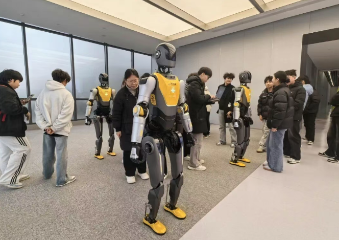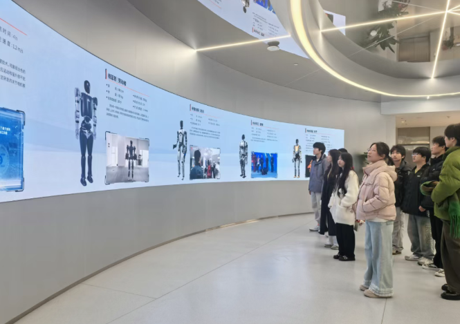 “看!它不仅能走,还能调整重心防止摔倒。”在演示区,看着机器人灵活地完成上下楼梯、跨越障碍等高难度动作,学生们发出了阵阵惊叹。通过技术人员的讲解,学生们理解了传感器配置、关节驱动系统以及动态平衡控制等专业知识。