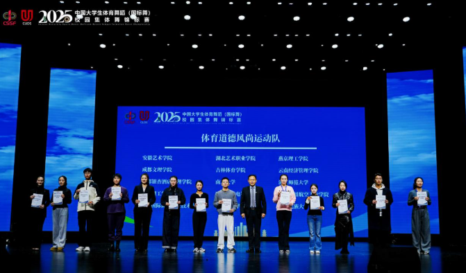 12月4日至8日,2025中国大学生体育舞蹈(国标舞)校园集体舞锦标赛在四川成都盛大启幕。湖北艺术职业学院演艺学院24级、25级共36名国标舞学子,以三冠一亚的亮眼成绩展现了湖艺育人的丰硕成果。