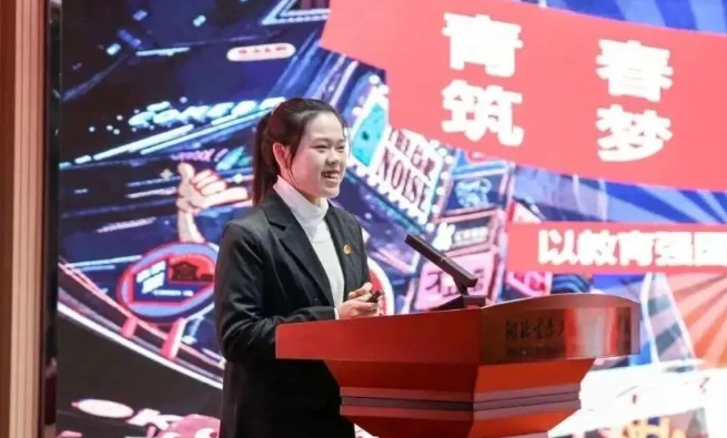 省级宣讲员刘陈苗以“行李箱里装什么”互动切入,讲述“第十六届中国大学生年度人物”苏正民借教育扶贫从大凉山走出、反哺家乡的故事,通过“一袋核桃”等细节将“教育强国”具象化,呼吁同学们“扎下去、融进去、干下去”,努力成为“主动发光的创造者”。