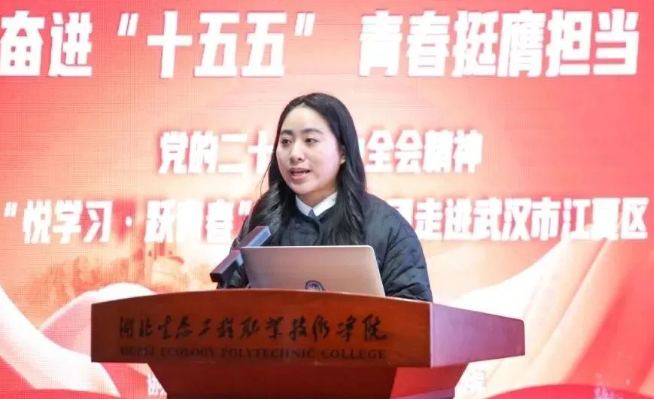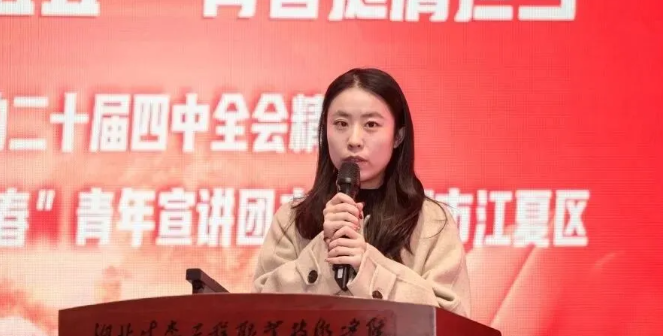市级宣讲员吴静怡聚焦党的二十届四中全会意义,回顾“十四五”时期国家及武汉发展成就,剖析“五年规划”的制度优势。结合武汉“五个中心”建设,解析“十五五”发展要点与青年发展机遇,与大家共勉,将个人理想融入党和国家事业。