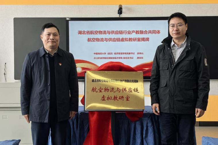 活动中,两校双方共同签署了党建联建协议,并为“湖北省航空物流与供应链行业产教融合共同体航空物流与供应链虚拟教研室”揭牌。该平台的建立旨在通过课程共建、教学研究、师资培育等方面的深度合作,打造一个以党建为引领、促进产教融合与校际协同的创新实践载体。