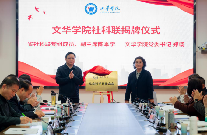 开幕式上,文华学院科研与技术开发处常务副处长、学科建设办公室主任彭晓艳作筹备工作报告,何光志宣读《关于同意文华学院社会科学界联合会成为湖北省社会科学界联合会团体会员的批复》。随后,陈本学与郑畅共同为“文华学院社会科学界联合会”揭牌。