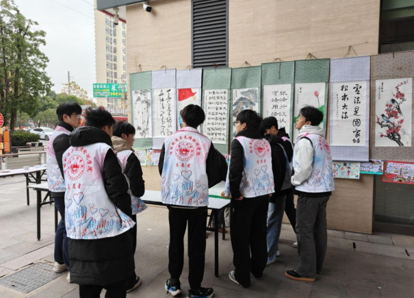 清晨七点,志愿者们准时抵达活动现场,迅速投入筹备工作。他们有条不紊地摆放桌椅、整理宣传物料,将一幅幅蕴含法治内涵的书法绘画作品精心布置于墙面。从作品陈列的间距调整到宣传区域的功能划分,志愿者们以细致周到的筹备工作,为活动营造出庄重有序且温馨浓厚的法治宣传氛围。