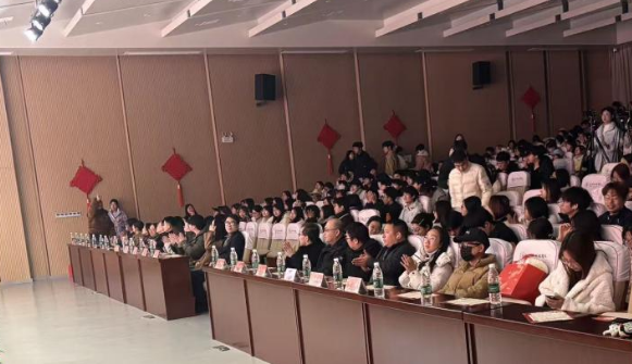 12月16日,冬日暖阳融学府,岁序新章启华章。武汉文理学院商学院“商院逐光,新岁启航”2025年教学成果展暨2026年元旦联欢晚会在5栋521报告厅举行,全院师生欢聚一堂,在精彩纷呈的节目演出和隆重的表彰环节中,共同迎接新年的到来。