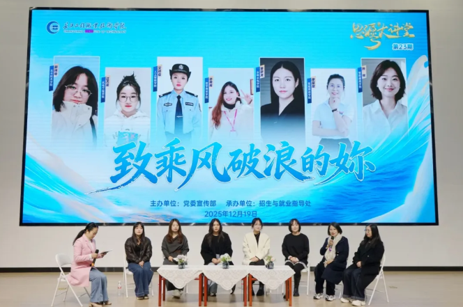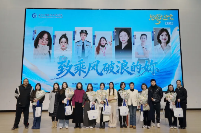 12月19日,由长江工程职业技术学院党委宣传部主办、招生与就业指导处承办的第23期思源大讲堂顺利开讲。本期活动以“致乘风破浪的妳”为主题,特邀7位优秀女校友荣归母校,分享职场打拼的鲜活故事与成长路上的深刻感悟。学校党委书记马大奎、党委副书记陈欣,党委宣传部、招生与就业指导处、党委学工部相关负责人,各党总支书记、全体专兼职辅导员及2024级、2025级学生代表到场参与。