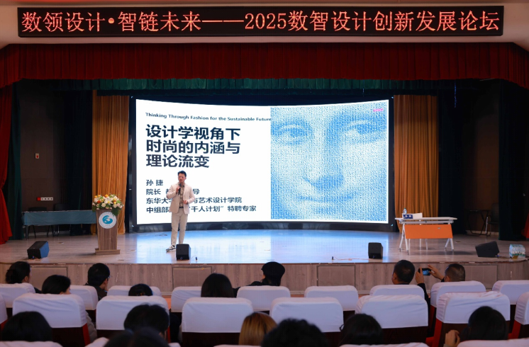 在主题演讲环节,孙捷教授以《设计学视角下数字时尚发展与逻辑》为题,从全球视野出发,系统阐释了数字时尚不仅是技术的应用,更是设计逻辑、文化价值与产业生态的系统性重构。他强调“设计驱动式”社会创新在可持续消费与产业升级中的核心作用。
