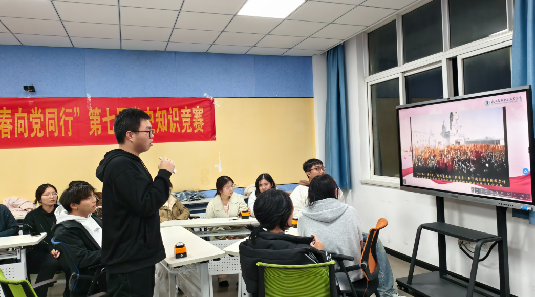近日,武汉船舶职业技术学院计算机信息技术学院创新社区举办的第七届党史知识竞赛圆满落幕。此次活动以“百年风华正茂,青春向党同行”为主题,旨在引导广大学生厚植爱党爱国情怀、筑牢理想信念根基,吸引全校约150名学生踊跃参与。
