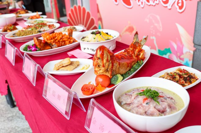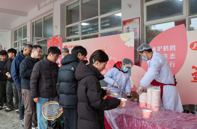 松鼠桂鱼、剁椒鱼头、糍粑鱼、清蒸刁子鱼……12月23日中午,一桌好鱼在武汉商学院北区食堂门口展出,18道各具特色的鱼肴令人食指大动。另一侧,冒着热气的鱼丸、鱼汤已经出锅,吊足了排着长队的师生味蕾,想要一品来自鹤鸣湖的新鲜馈赠。
