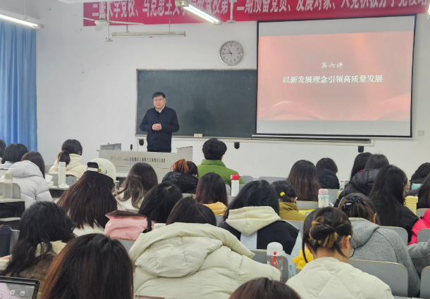 党委常委赵旭聚焦“以新发展理念引领高质量发展”,进行了深入浅出的理论阐发。他巧妙运用历史数据对比、地方发展实例和权威文献解读,生动揭示高质量发展的科学内涵与实践路径,引导学生立足新发展阶段,完整、准确、全面贯彻新发展理念,思考青年在构建新发展格局中的责任与作为,强化了理论指导实践的认识自觉。