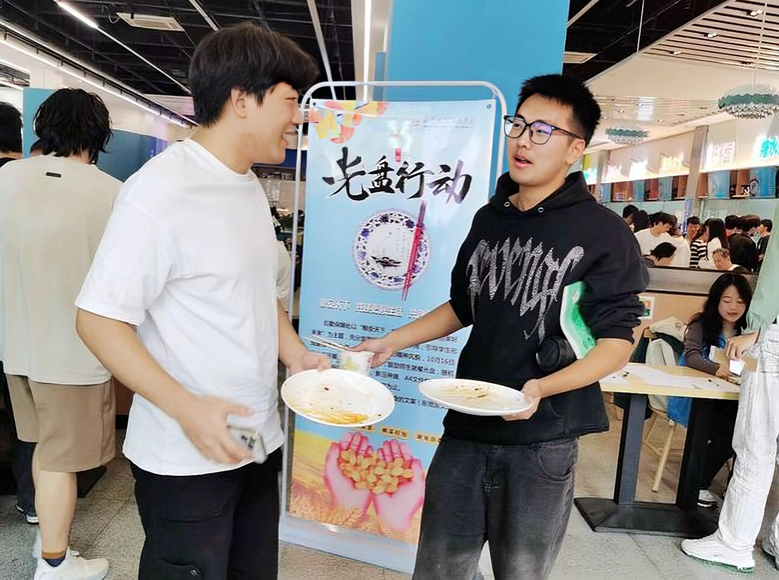 师生的态度,早已从“为拿奖品被动参与”转变为“内化于心主动践行”。“大一时跟着同学一起打卡换礼品,现在看到食堂墙上‘一粥一饭当思来之不易’的标语,想到农业劳动者的辛苦,打饭时会下意识少盛点,不够再添。”光电与信息工程学院2024级电子信息工程技术专业学生彭宇枫说,他不仅自己坚持光盘,还会在宿舍里发起“光盘比拼”,提醒室友“别贪多、够吃就好”,节约慢慢成了宿舍的新风尚。