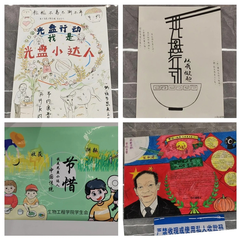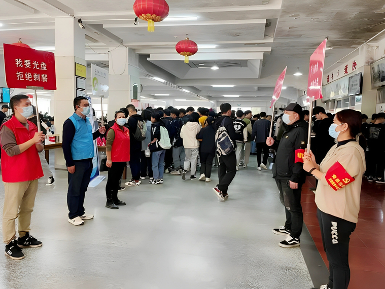 文明氛围的营造更是下足“绣花功夫”,融入校园环境治理。六年来,学校在双校区各食堂累计张贴宣传海报100份、悬挂主题横幅53条、粘贴光盘标识3800余张,凝练出“一粥一饭当思来之不易”“节约无小事 光盘在行动”等40条接地气的标语。餐桌上的提示牌也与时俱进,从最初的“拒绝剩餐”,逐步优化为“半份饭更划算”“小份菜不浪费”“不够再添不浪费”等贴心提示,潜移默化中引导师生转变用餐观念。