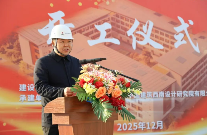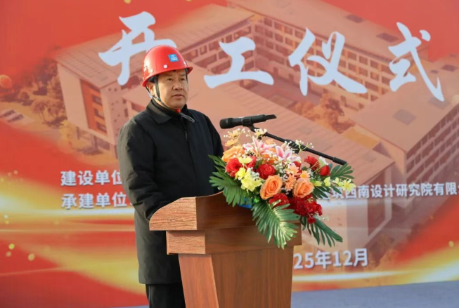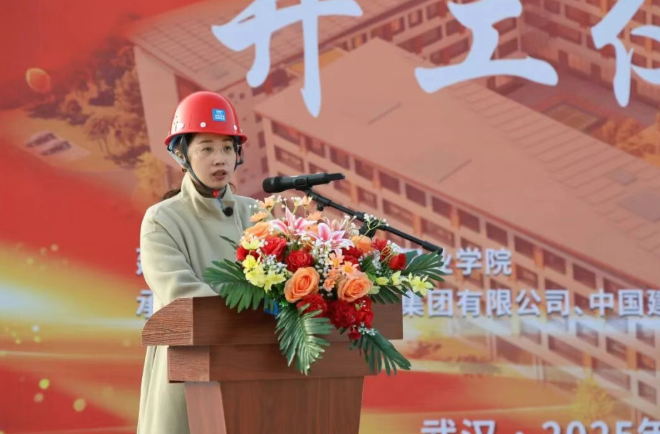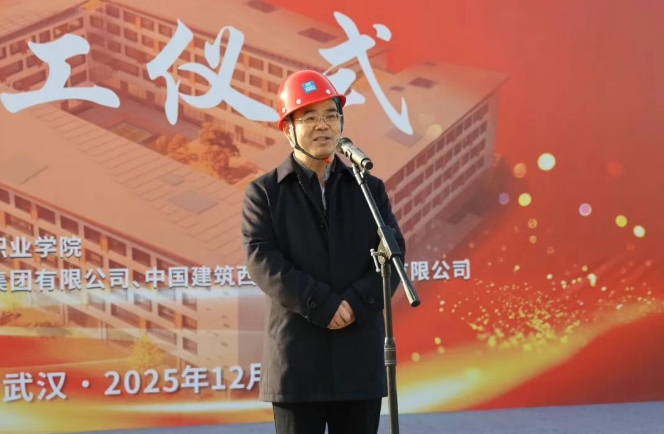 武汉市洪山区青菱街道办事处副主任贾玉婷在致辞中对项目顺利奠基表示热烈祝贺,向关心支持青菱街道及学校发展的各界人士表示衷心感谢,并向项目筹备人员致以亲切问候;她表示,武汉交通职业学院是青菱街道辖区的宝贵资源与重要力量,此次先进制造产教融合实训基地项目开工,既是学校提升办学实力的关键举措,也将为青菱街道的城市更新与品质提升注入新活力。作为属地街道,青菱街道党工委、办事处将秉持“服务发展、共建共享”理念,从做好服务保障、维护建设秩序、深化校地融合三方面全力支持项目建设,期待以项目为契机,与学校在科技成果转化、人才引育等多领域深化合作,实现校地资源互通、发展互促;同时她坚信项目能高标准建成,成为学校标志性建筑与青菱街道的靓丽风景线,预祝项目建设圆满成功,祝愿学校发展蒸蒸日上。