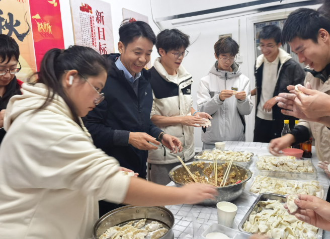 活动现场节日氛围浓厚,洁白的面粉、薄透的饺皮、鲜香的馅料整齐陈列,师生们围坐成圈,俨然一家人般热络。大家迅速分工、默契协作,包馅、捏边各展身手:有的手法娴熟,转眼就包出一个个造型规整的饺子;有的初尝技艺,在师生的耐心指导下慢慢摸索,现场不时响起阵阵欢笑。片刻之间,一个个饱满圆润、透着鲜香的饺子便整齐地码满餐盘。学院党总支书记冯常奇等教师也融入其中,一边包饺子,一边与同学们亲切闲谈,分享各民族独特的饮食习俗与生活趣事,在轻松互动中拉近了师生距离,更增进了各民族间的相知相融。