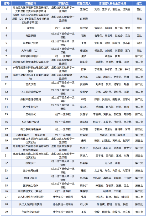 12月26日,教育部公布了第三批国家级一流本科课程认定结果。三峡大学13门课程荣列榜中,其中线上课程2门、虚拟仿真实验教学课程3门、线上线下混合式课程4门、线下课程1门、社会实践课程3门,线上课程和社会实践课程均以100%入选率圆满收官。此次入选课程数量及三批课程总数均位列湖北省属高校第2位。