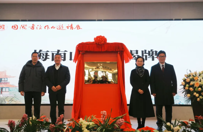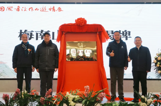 仪式上,省文联原党组书记刘永泽、武汉市国际文化交流中心常务副理事长徐精华、武昌理工学院党委书记高建勋、湖北省国学研究会会长孙劲松共同为梅南山书院揭牌。