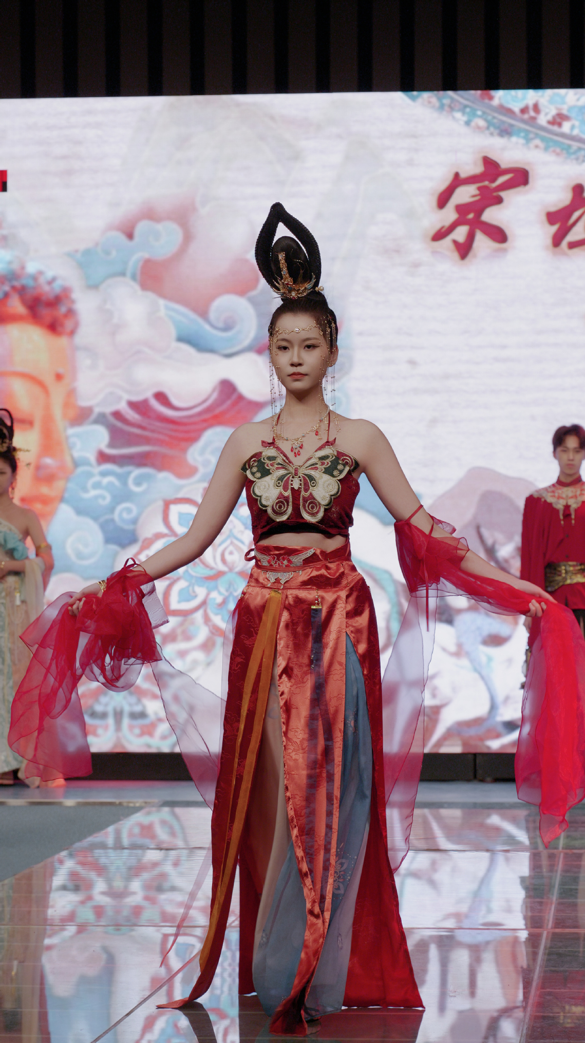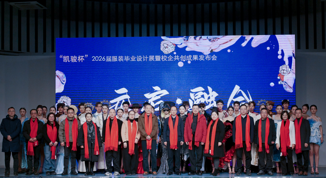 数字织锦绣,匠心绘霓裳。12月25日上午,武汉职业技术大学时尚与传媒学院在凌曦楼表演厅举行“凯骏杯”2026届服装毕业设计展暨校企共创成果发布会。本次展演以“元启·融合”为主题,集中呈现数字科技与服饰艺术、传统文化与未来美学的融合创新。