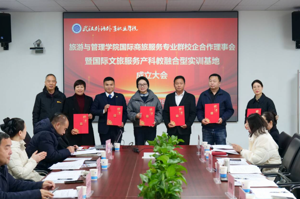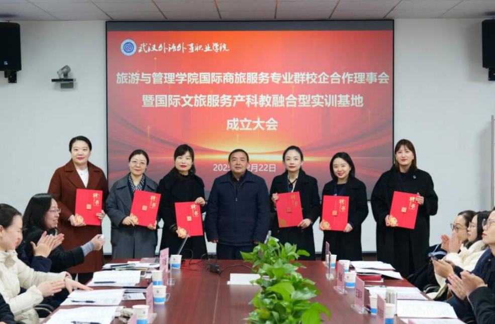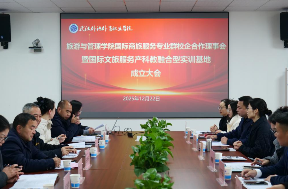 12月22日下午,武汉外语外事职业学院旅游与管理学院在办公楼606会议室举办国际商旅服务专业群校企合作理事会暨国际文旅服务产科教融合型实训基地成立大会,理事会聚焦人才培养质量提升,推动校企资源深度整合,服务企业转型升级需求,搭建行业交流与协同创新平台,探索职业教育校企合作新模式,与文旅、交通枢纽、酒店服务等相关领域的19家企业代表与学院共同探讨校企协同育人新路径。