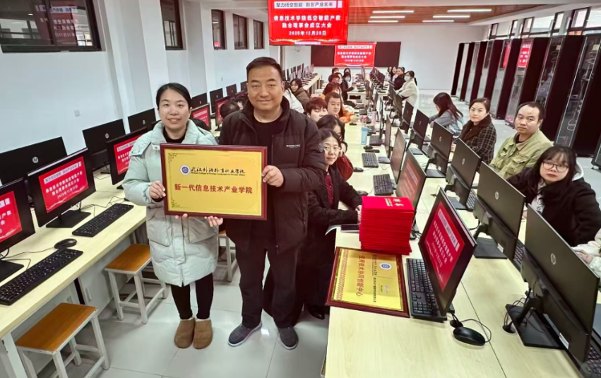 12月23日下午,武汉外语外事职业学院信息技术学院低空智能产教融合理事会成立大会在学校5号楼510新实训室举行。本次大会标志着学院在深化产教融合、服务区域低空经济发展方面迈出了坚实而关键的一步,为培养高素质技术技能型人才构建了全新的校企协同平台。学院领导、相关专业教师代表与来自低空智能产业链的多家知名企业负责人、技术专家共同出席了此次盛会。