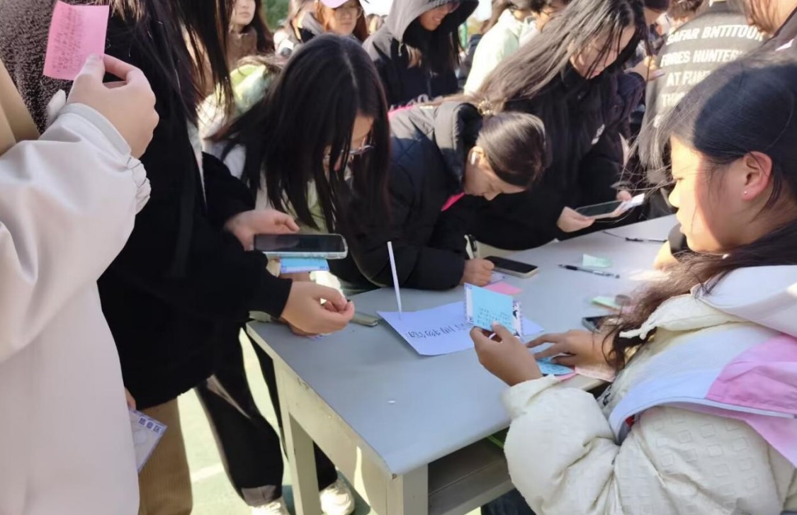 公益歌曲接龙环节氛围热烈,工作人员围绕“爱”“温暖”“奉献”等公益关键词精心筛选曲目,师生们踊跃举手、接力演唱。清甜婉转与激昂有力的歌声交替回荡,旋律中满溢青春热忱,既丰富了活动的趣味性,更以歌声传递公益力量,让温暖氛围持续升温。