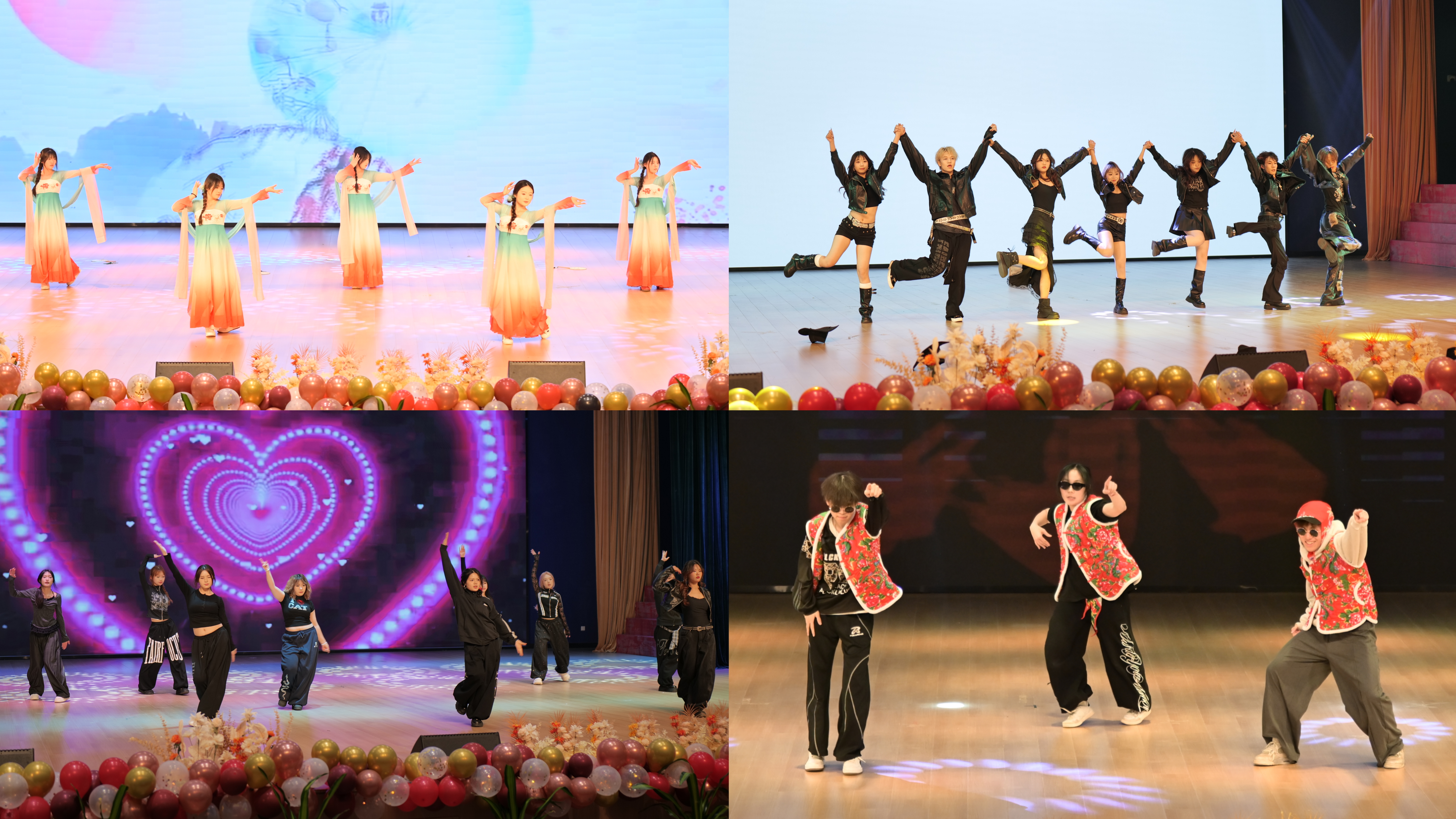 “第一篇章:新元·启程”在工程技术学院带来的歌舞《张灯结彩》中拉开帷幕,喜庆的节奏与欢快的舞步营造出浓厚的节日氛围。随后,医疗与护理学院的动感Kpop舞蹈《unforgiven》、信息技术学院典雅婉约的民族舞《青花瓷》,以及校艺术团与旅游与管理学院合作表演的街舞《Beat Burst Show》相继上演,传统与现代交织,刚劲与柔美并存,展现了青春舞台的多元魅力与无限活力。