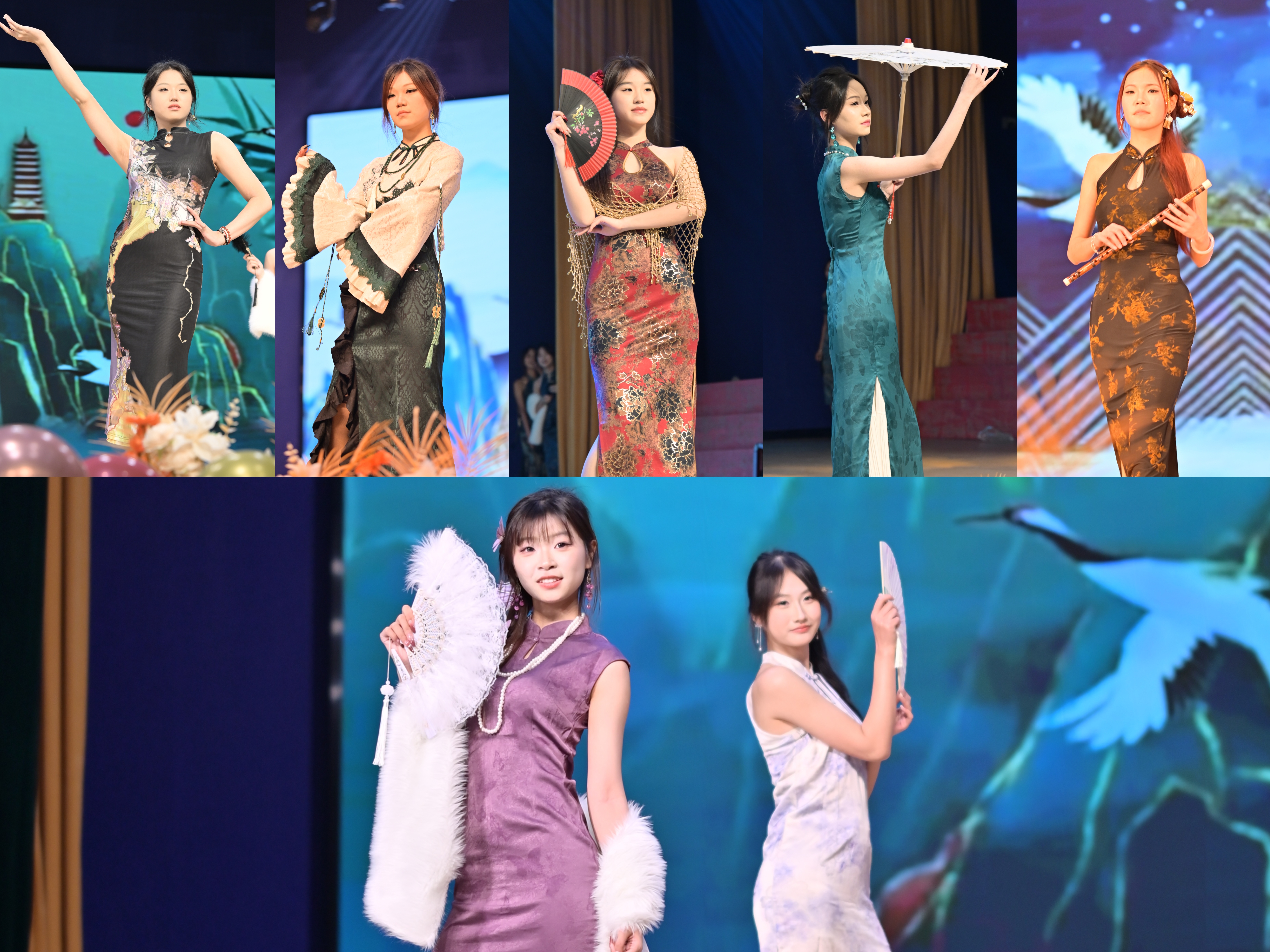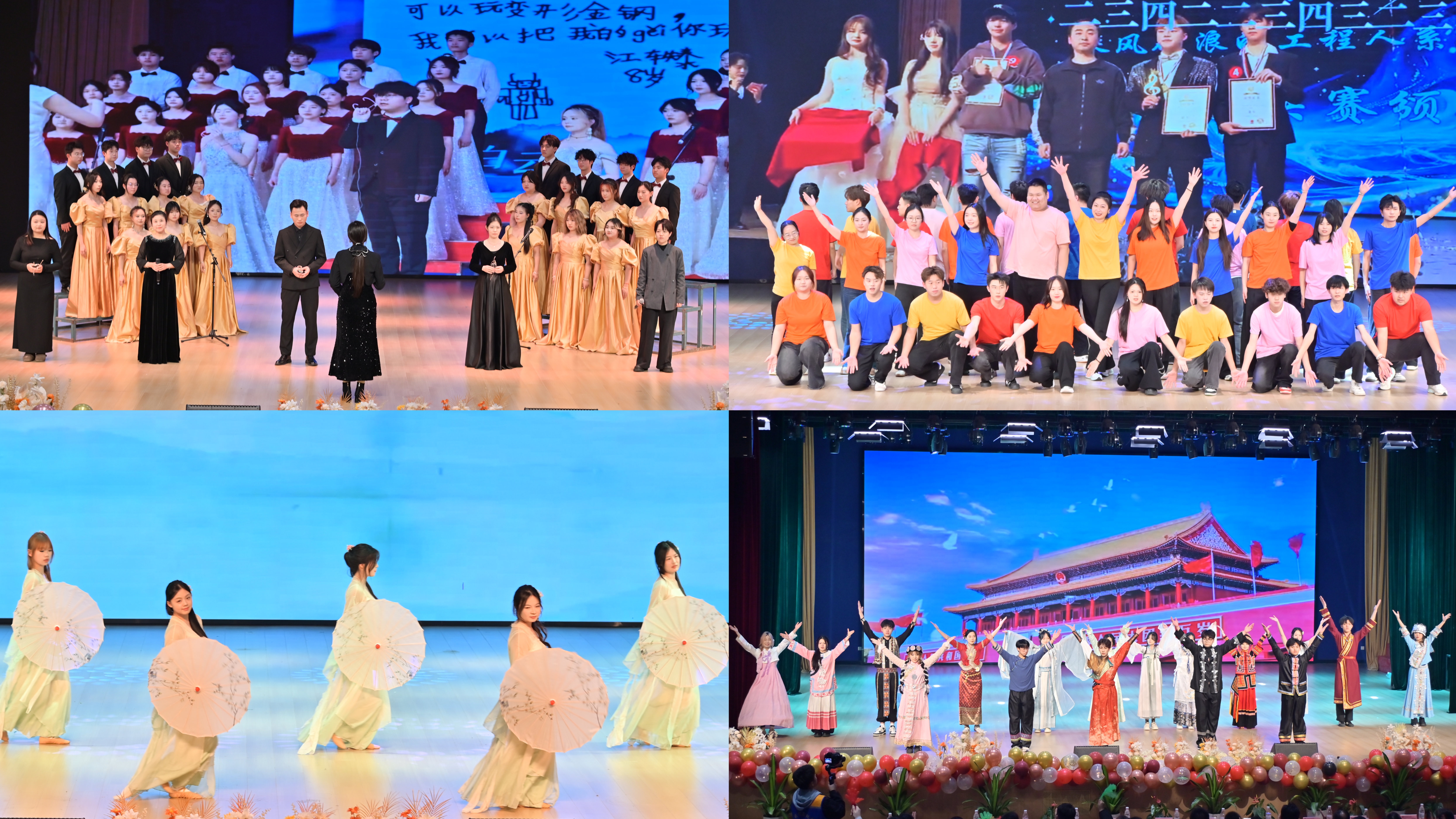 “第三篇章:华章·绽放”深情礼赞师生情谊、文化自信与家国情怀。外语与艺术学院师生的合唱《亲爱的你啊》温情动人,工程技术学院师生同台的舞蹈《时代感》诠释了团结一心、砥砺前行的精神。礼仪走秀《锦时·东方境》呈现了传统美学,舞蹈《等归人》以优美舞姿诉说深情期盼。晚会在外语与艺术学院表演的民族舞《美丽中国》中圆满落下帷幕,表达了对祖国繁荣昌盛的美好祝福,也展现了全体“外院人”奋进新时代的坚定信念。