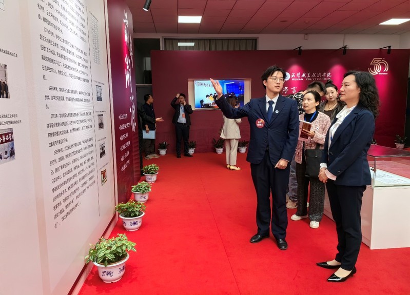 同期,由董玉玲、鲍杰、张皓天等人组成的首批学生校史讲解员经过培训正式“上岗”,于学校五十周年校庆当日,为线下展览参观者讲述校史。2022级旅游管理专业学生张皓天感触尤深:“我们从校史整理者,变成了讲述者、传承者。在讲述学校从一片荒地发展至今的历程时,心中的自豪感油然而生。”