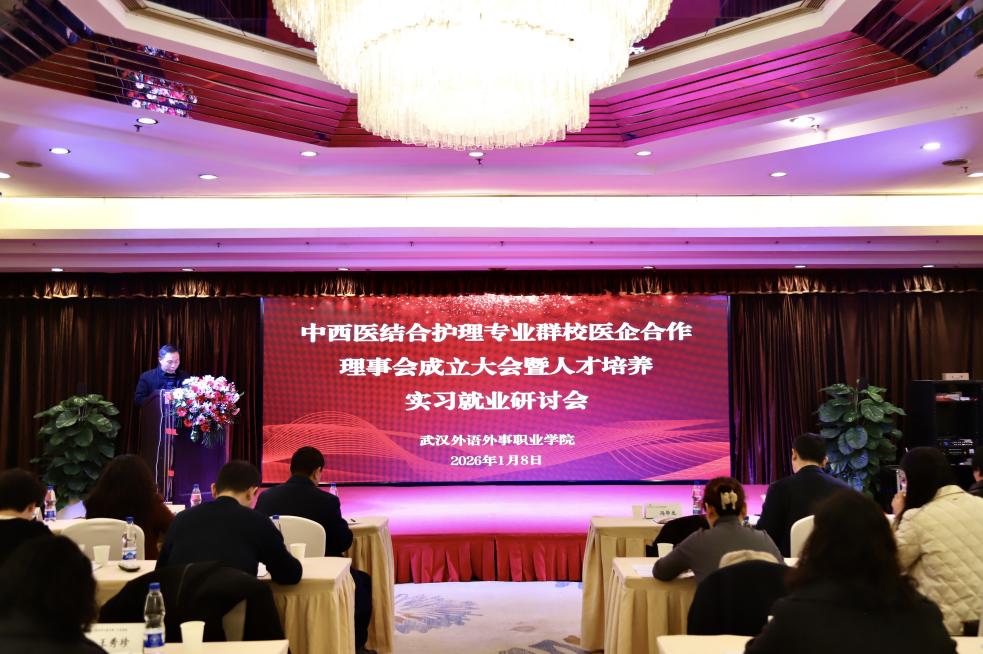 为进一步深化产教融合、推动职业教育高质量发展,1月8日上午,武汉外语外事职业学院“中西医结合护理专业群校医企合作理事会成立大会暨人才培养、实习就业研讨会”在武汉美联假日酒店顺利召开。本次会议由美联教育集团主办、武汉外语外事职业学院承办,来自近40家医院及企业的领导、专家与学院师生代表齐聚一堂,共话医护人才培养新路径。
