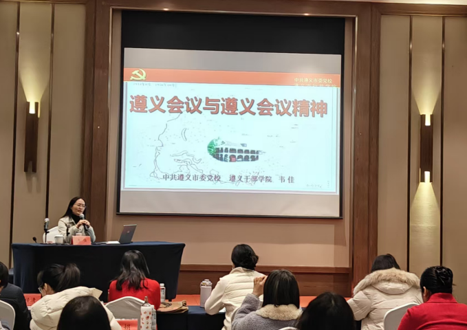 开班仪式后,全体教师聆听了由遵义干部学院韦佳副教授主讲的《遵义会议与遵义会议精神》专题报告。教授从遵义会议召开的历史背景、会议过程、重大转折意义及精神内涵四个维度进行了系统阐述,深入剖析了“坚定信念、实事求是、独立自主、敢闯新路、民主团结”的遵义会议精神内核。教师们全神贯注、认真笔记,并与授课专家就如何将遵义会议精神融入思政课教学进行了深入互动交流。