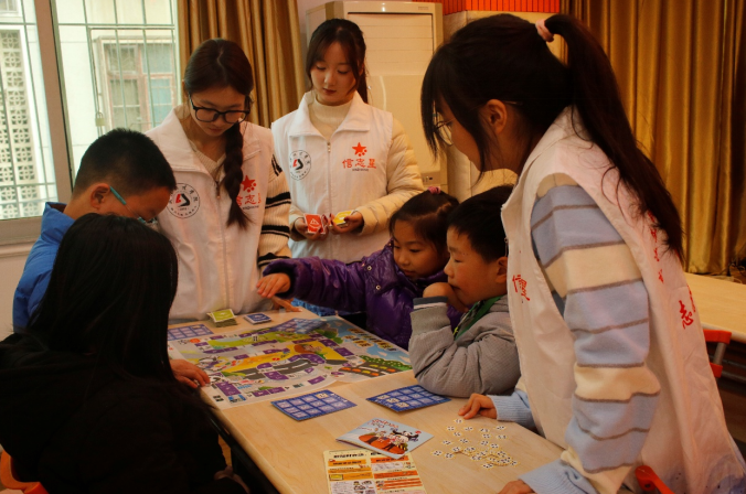孩子们围坐在棋盘旁,眼睛紧紧盯着棋子,小脑袋飞速运转,思考着每一步该怎么走。每当有孩子走到了带有交通安全问题的格子,团队成员们就会耐心地讲解,用生动有趣的语言让孩子们轻松理解。在欢声笑语中,交通安全知识就像种子一样,在孩子们的心中生根发芽。