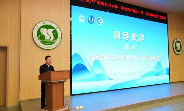 水利部长江水利委员会人事局副局长谭杰致辞,回顾了长江大保护十年来取得的显著成效,介绍了长江委在强化规划引领、筑牢安澜防线、深化生态修复等方面的工作进展,并对共同体发展提出三点希望:坚持战略引领,将流域系统治理、智慧水利等最新需求融入人才培养;强化协同攻关,围绕数字孪生流域等前沿问题,建立“企业出题、院校答题”的深度合作机制;赓续长江文脉,将水文化保护与弘扬融入育人全过程,凝聚更广泛的社会护水共识。他表示,长江委将持续支持共同体建设,与各方共同绘就人水和谐的长江新画卷。