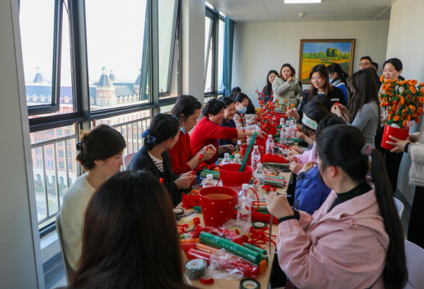 随后,师生们与现场医护人员共同开展了以马年春节为主题的艺术手工活动,立足学院专业特色,结合浮雕、马年、梅花、桔子等元素,通过艺术语言传递对马年新春的迎接、对医者责任的礼赞。
