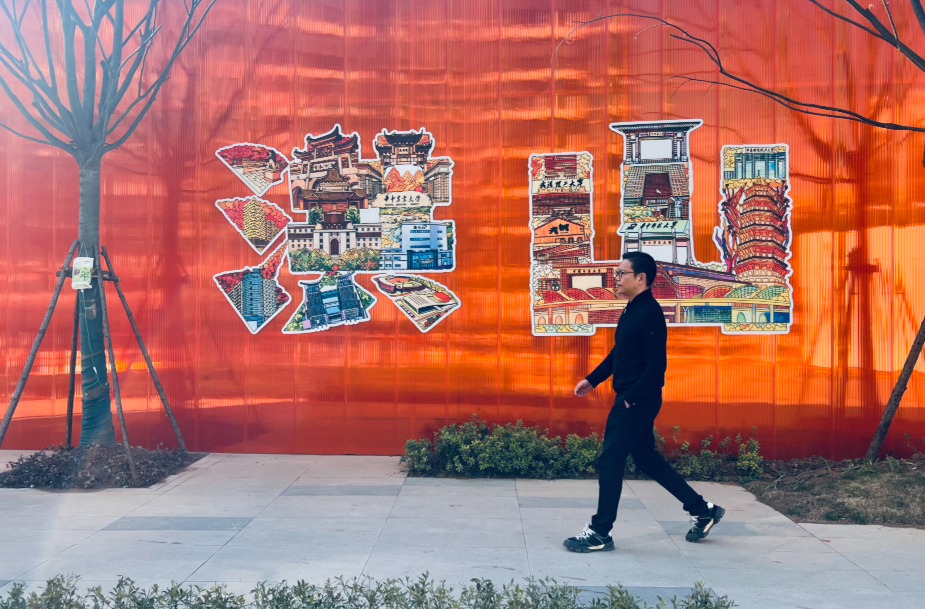 在这组精心构思的作品中,“洪山”二字跃然成为一幅生动的城市画卷。创作团队将武汉大学、华中科技大学、华中农业大学、武汉理工大学等高校的标志性建筑,与马应龙、烽火创新谷、创意天地、融创智谷等产业地标巧妙嵌合。卓刀泉、武汉火车站、天兴洲等融合历史与未来的地理符号,亦作为笔画细节细腻融入,真正做到了“字中有画,画中藏意”,既彰显洪山作为“大学之城”的厚重文脉,也勾勒出其作为“创新热土”的当代活力。