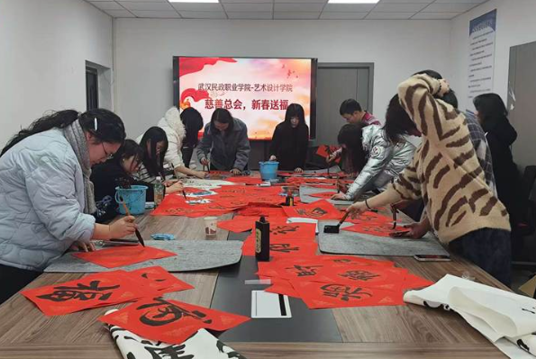 为弘扬中华优秀传统文化,营造喜庆祥和的节日氛围,同时积极响应大学生寒假“返家乡”社会实践的号召,武汉民政职业学院艺术设计学院“艺心绘梦”志愿服务队近日携手湖北省慈善总会“医路同行”项目组,共同举办了“春节送福·团圆幸福”主题活动。