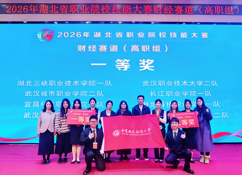 近日,2026年湖北省职业院校技能大赛财经赛道(高职组)结果揭晓。武汉职业技术大学商学院选派2支代表队,与来自全省48所高职院校的81支参赛队伍同台竞技,最终斩获一等奖、二等奖各1项,彰显了学校财经类专业人才培养水平与师生精神风貌。
