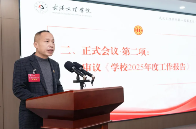 1月19日,武汉文理学院召开第一届教职工暨工会会员代表大会第五次会议。全体校领导出席会议,两代会正式代表共72人参加会议。会议由校工会常务副主席李彩琴主持。