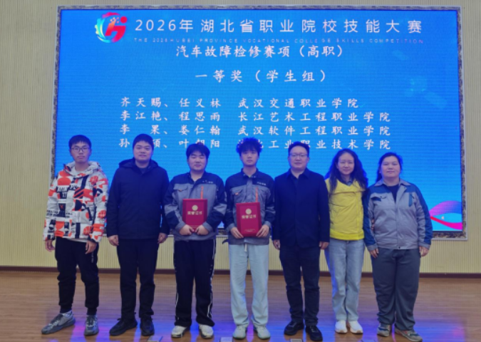 近日,2026年湖北省职业院校技能大赛“汽车故障检修赛项”在襄阳科技职业学院落幕。武汉交通职业学院学生齐天赐、任义林凭借扎实的专业功底和出色的临场发挥,在37支参赛队伍中脱颖而出,荣获学生赛一等奖;教师徐美滟凭借全面稳定的综合表现,获教师赛二等奖,充分展现了该校在汽车类专业人才培养与师资队伍建设方面的硬实力。