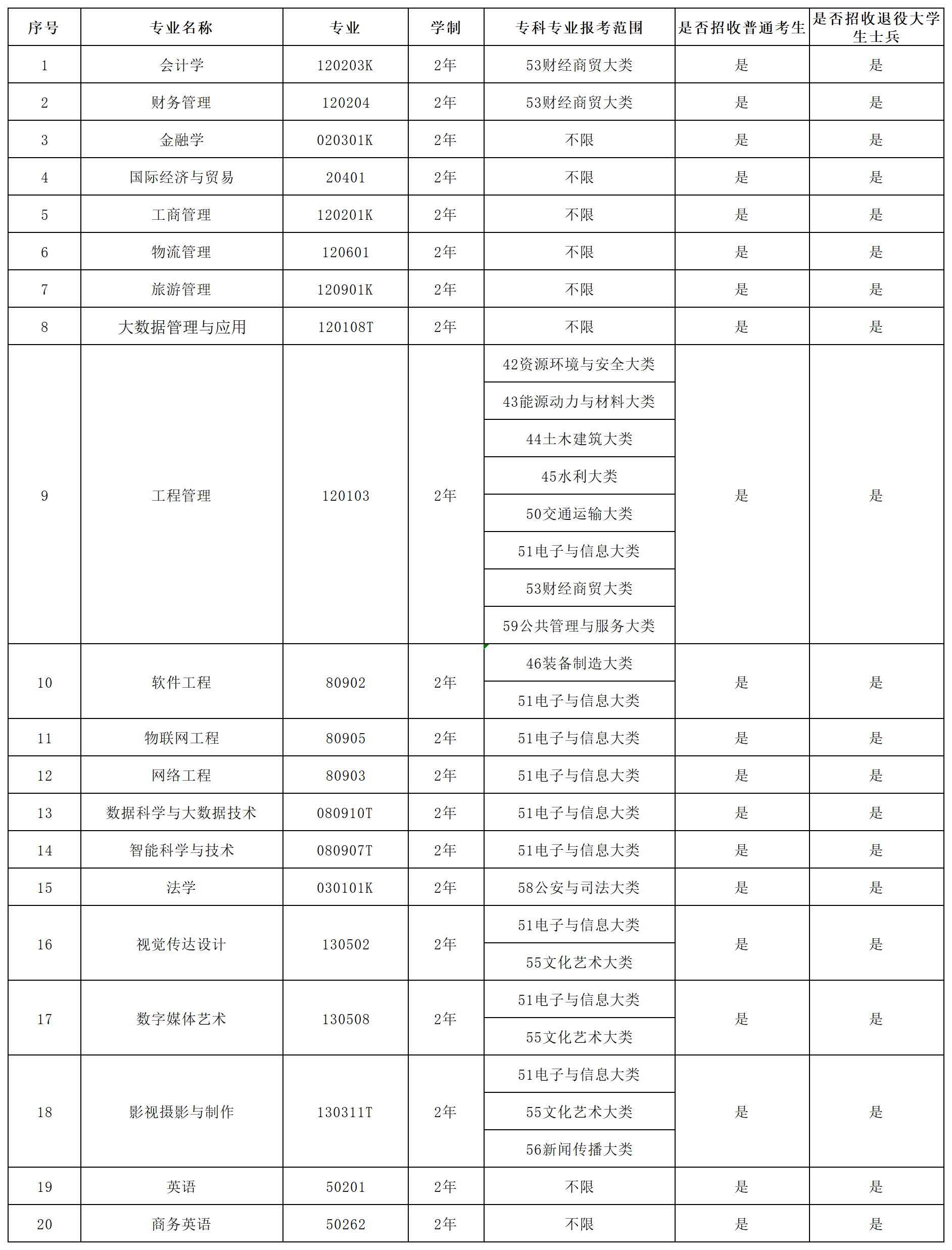 培养。专升本学生(含退役大学生士兵)为高等学校普通全日制学生,学制2年,相关档案需转入我校,不得采取非全日制学习形式就读,入学后不得转专业和转学。专升本学生原则上单独编班教学,确实无法单独编班的可安排插班教学。
