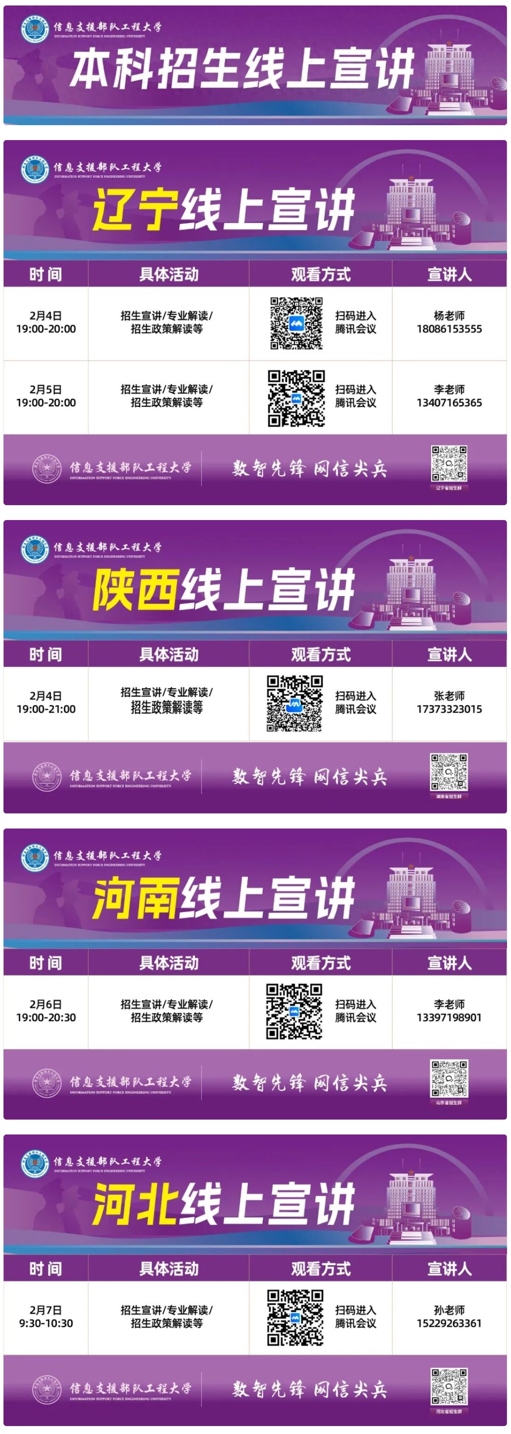 信息支援部队工程大学本科招生线上宣讲预告(2月4日至2月7日)