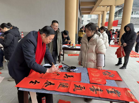 2月3日上午,丙午马年新春气息渐浓,湖北省宜昌市五峰土家族自治县长乐坪镇游客接待中心村民广场暖意洋洋、墨香四溢。由长乐坪镇人民政府联合五峰土家族自治县书法协会主办、洞口村村委会承办的“万福迎春”送福进万家暨“永远听党话,笔墨润万家”文化惠民活动在此举行,湖北美术学院驻宜昌市五峰县长乐坪镇洞口村工作队主动协助,同步配合开展“宜业在乡”春风行动专场招聘会,将文化与就业暖心服务送到群众家门口。