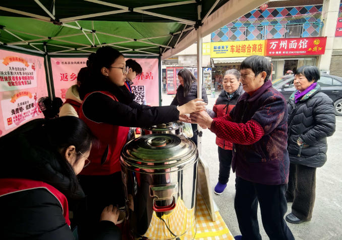 “您好,这是咱们巴东县的旅游宣传册,里面有特色美景和民俗介绍,欢迎常回家看看!”2月6日,在巴东县高铁站的人流中,一抹亮眼的“志愿红”格外引人注目。来自武昌理工学院商学院财管2304班的大三学生田晶晶正耐心为返乡旅客答疑解惑,双手递出的不仅是宣传资料,更是青年学子对家乡的热忱与牵挂。作为该校2026年寒假“返家乡”见习实践活动的一员,她用实际行动践行“奉献、友爱、互助、进步”的志愿精神,让寒冬里的回家路暖意融融。