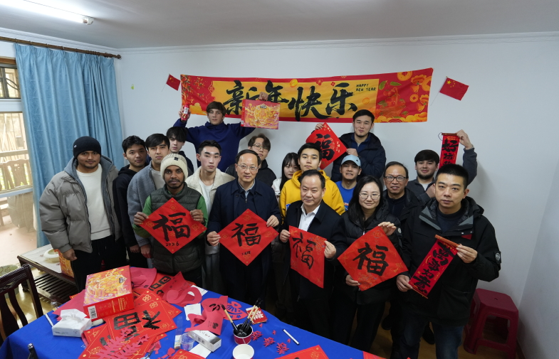 这场喜乐会将中国民俗体验、中外文化交流与特色美食共享巧妙相融,笔墨纳福、巧手裁红、共贴春联、百味同尝、温情互动等环节依次展开,留学生宿舍里处处欢声笑语,满是团圆的温馨。