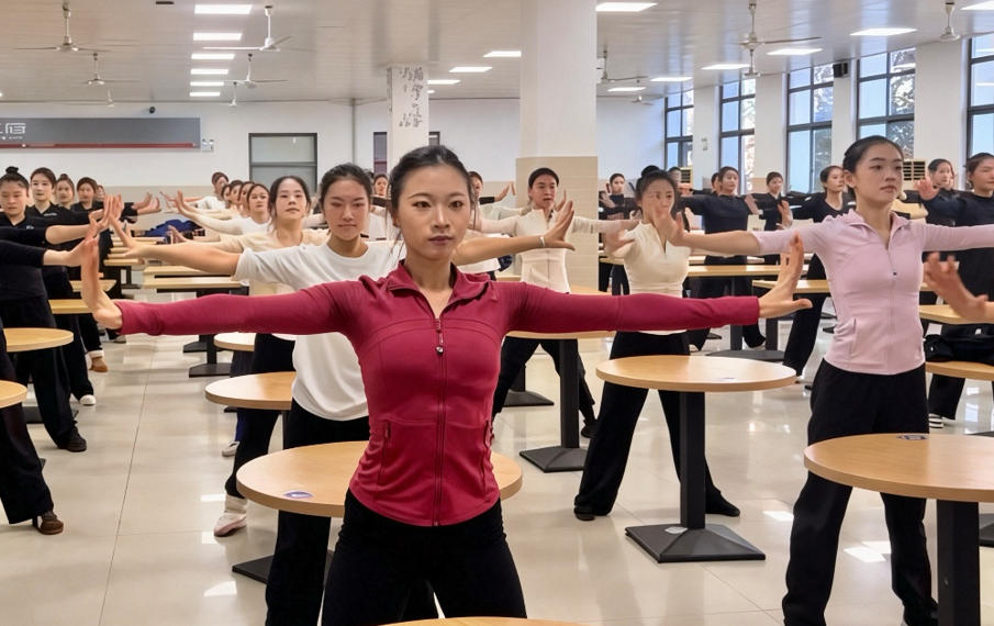 作为第二次登台的“老将”,张健多了一份从容与笃定。“去年是跟着学长学姐学,今年要带着学弟学妹练。”他说,从被带领到去带领,这种身份的转变让他学会了担当。“看着他们紧张,就想起去年的自己。能帮他们少走点弯路,比自己跳好更开心。”