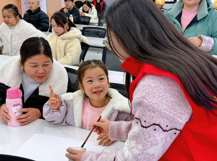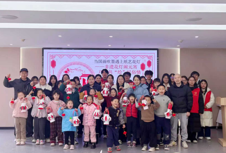 与仪式同步进行的,是一场充满温情与文化韵味的非遗体验活动。志愿者老师带领社区孩子们走进吹墨画的世界,用墨汁与气息勾勒传统艺术的灵动;在花灯制作环节,大学生志愿者与孩子们结对协作,扎架、拼装、装饰,一盏盏创意花灯在指尖诞生,点亮了孩子们的笑脸,也传递着文化传承的薪火。