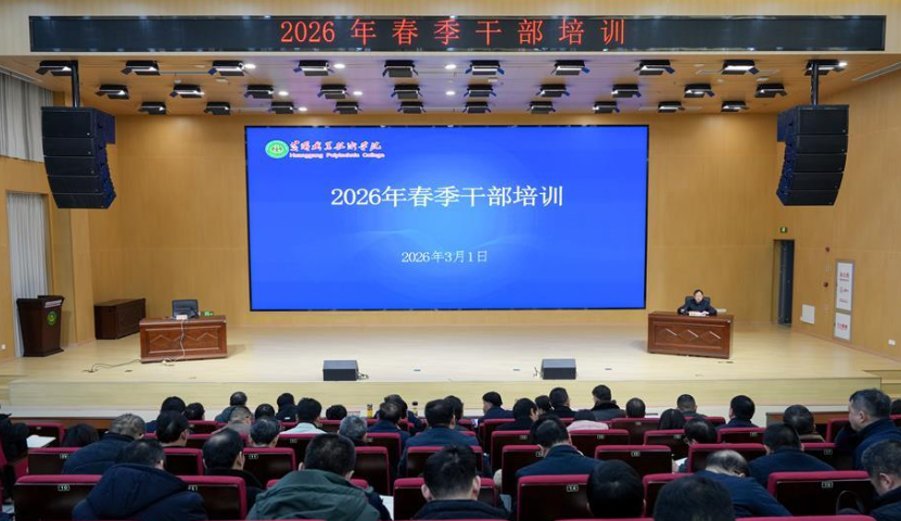 马跃新程,勇攀高峰。3月1日,正值农历正月十三,黄冈职业技术学院2026年春季学期干部教师培训会在西校区图书馆报告厅举行。培训聚焦“职业教育教学关键要素改革”与“职业本科高质量发展”两大使命,通过“线下面授+线上直播”的形式,为新学期工作蓄势赋能,共谋学校高质量发展新篇章。全体副科级以上干部参加培训。学校党委书记田洪光、校长姜安心等全体校领导出席培训会。党委委员、副校长周常青主持培训会。