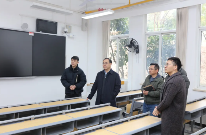 在实训室,校领导详细查看实训室开课准备、设备调试、耗材配备及安全管理情况,现场听取实训教学准备工作汇报,强调要加快实训室建设,持续优化实训室建设管理“五张图”。