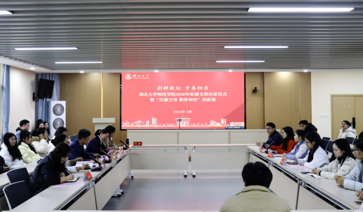 “支教有我,师范当先!”3月4日下午,铿锵誓言在湖北大学师范学院310报告厅久久回荡。这不仅仅是一场赴藏支教出征仪式,更是一堂以青春奔赴为底色的特殊思政课。湖北大学师范学院以“汉藏万里教泽相传”为主题,分“初心·回望”“灯塔·守望”“承诺·展望”“未来·期望”四个篇章,将教育家精神培育与民族团结担当熔铸于这堂以赴藏支教为主题的师范生思政课。校研究生工作部、湖北大学附属中学、学院相关负责人及师生代表汇聚一堂,与远在西藏山南的校友跨越山海“云端”相聚,共同见证这场关于理想与传承的青春奔赴。